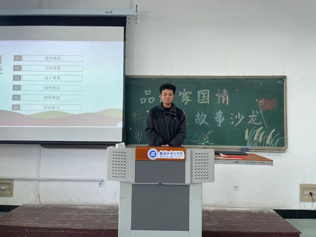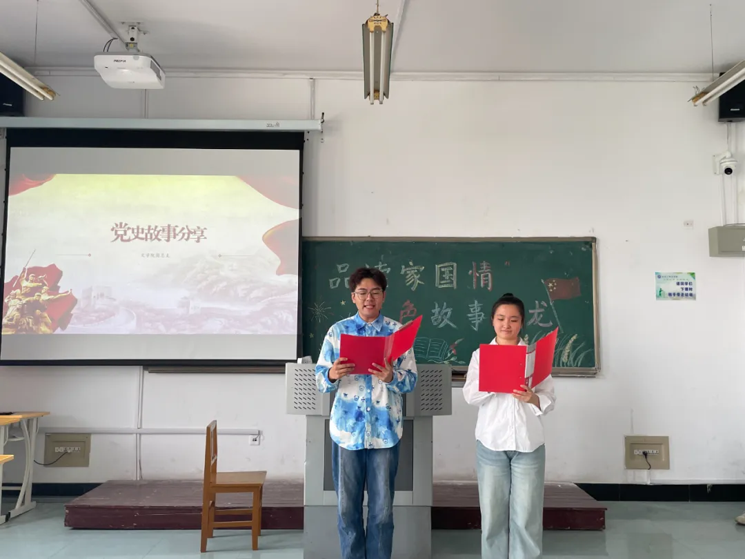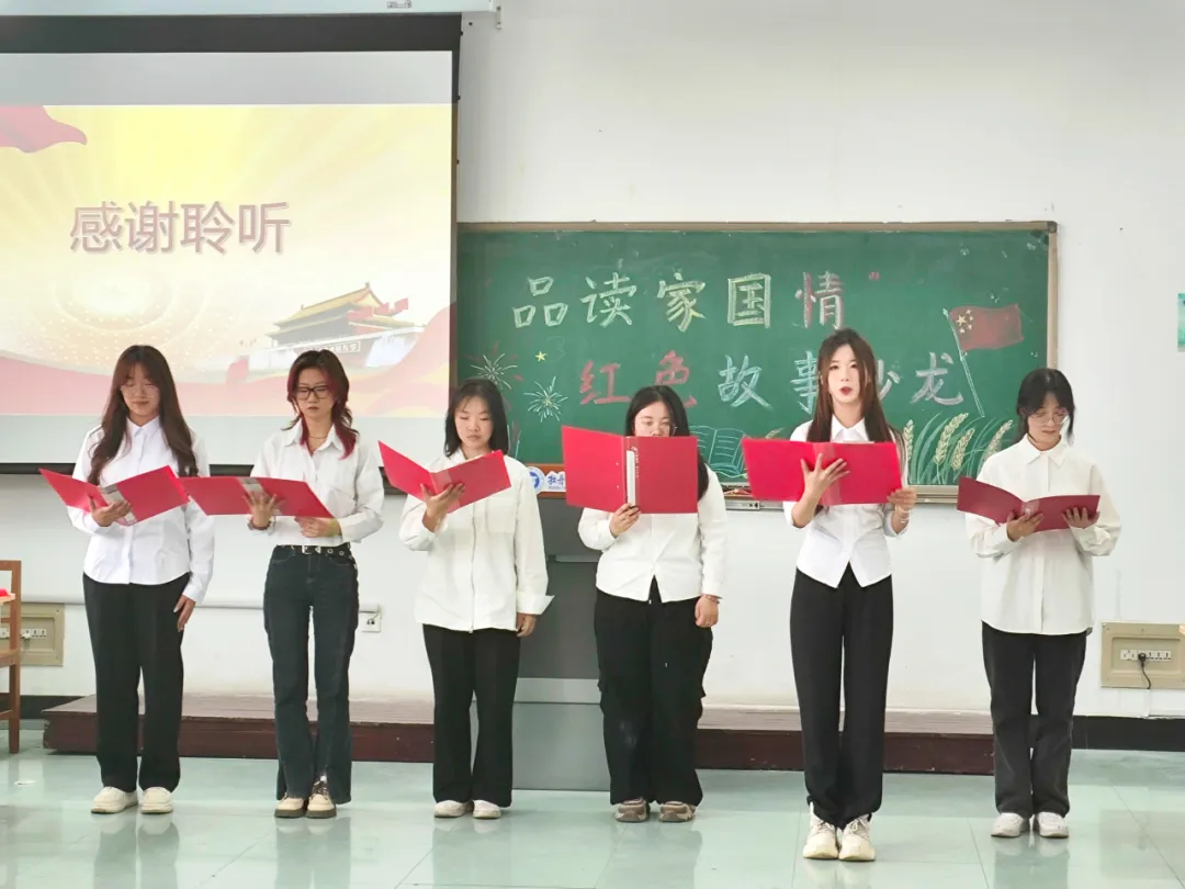 2022级、2023级的同学们向大家分享了红色家国故事,讲述了长征途中的艰难困苦,描绘了抗日战争中的英勇牺牲的场面。每一个故事都饱含深情,让人动容。付珩、关昕然、池梦婷三位同学朗诵的《我爱你中国》,让在座的全体同学都重温了祖国的光辉历史,感受到了红色基因的伟大与厚重。